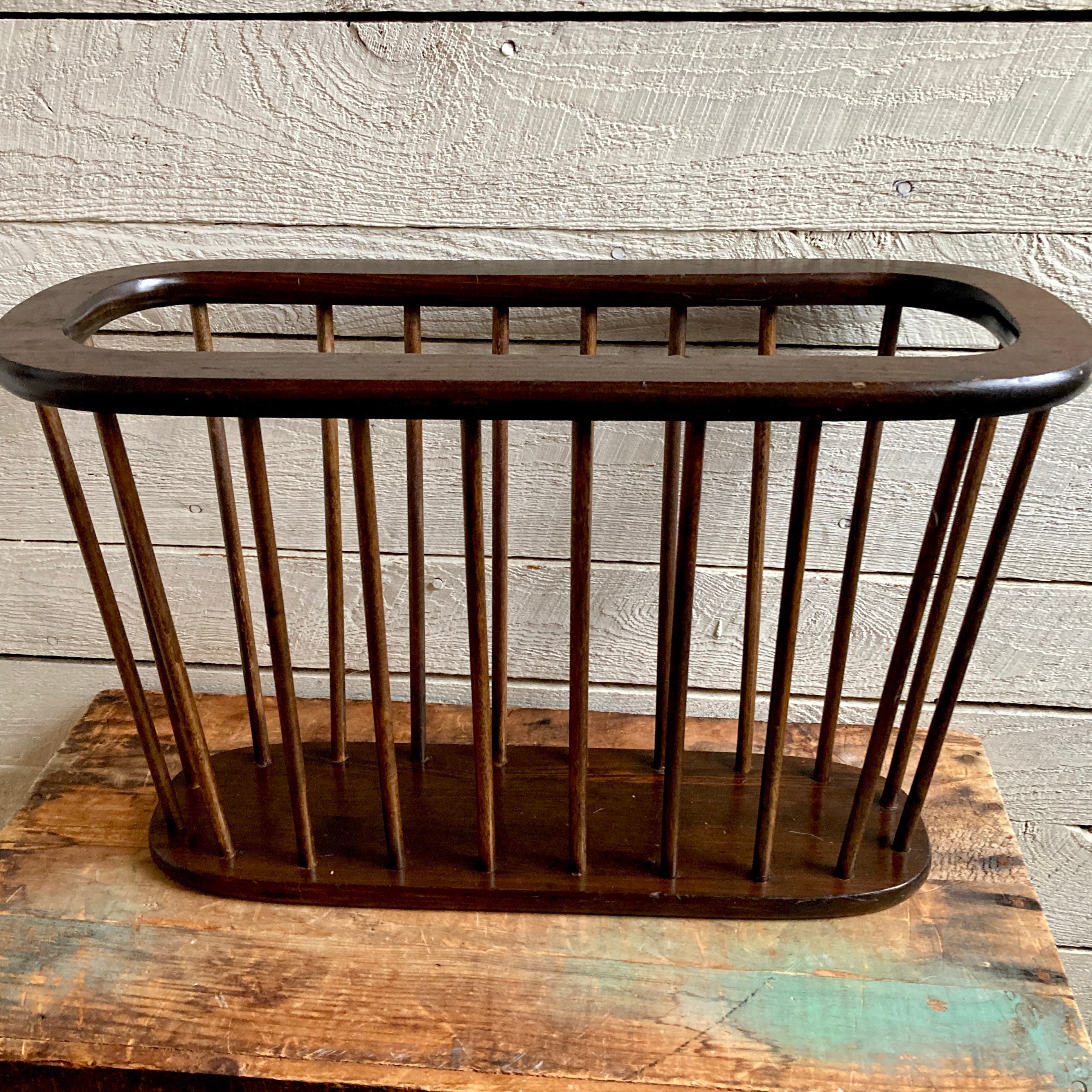 Vintage All Wood Magazine Rack 19 Long Two Compartments Handles Ebay