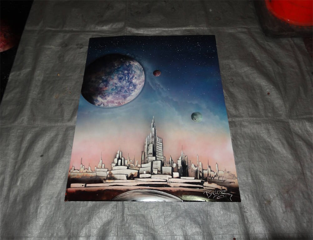 Cityscape In Space Spray Paint Art Space Painting Future Etsy